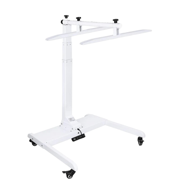 MS-Rack (Motoriseret) med hjul er yderst velegnet til klinikker og andre steder, hvor der ønskes mulighed for montering af lyspanel på en mobil enhed.
