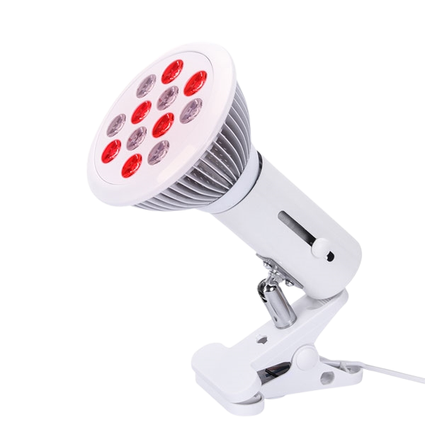 RD30 lyspanel indbygget i stor E27 pære til håndholdt rød og nær infrarød lysterapi. Fatning er endvidere forsynet med en klemme, så den kan fastgøres på en hylde eller lign.