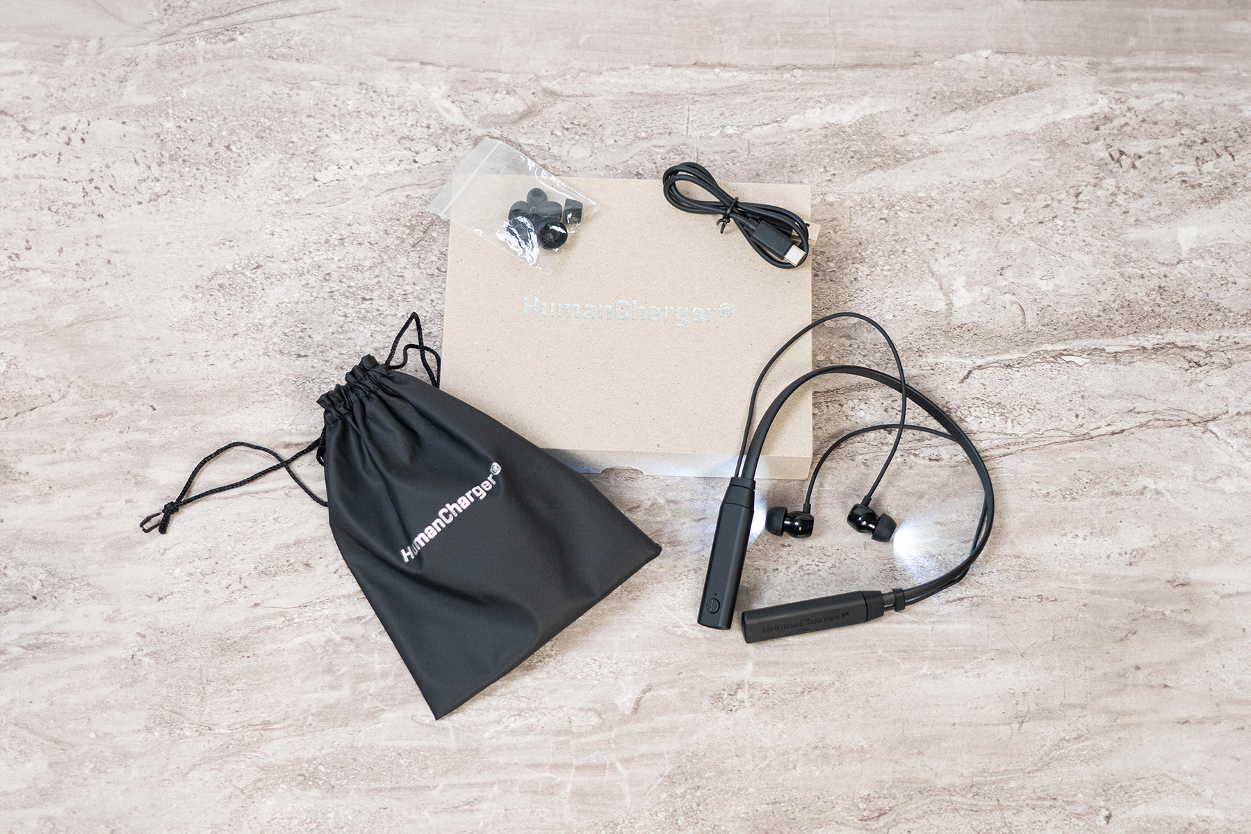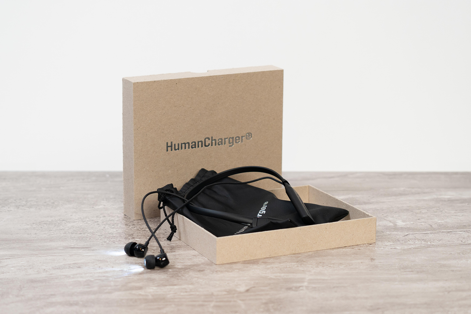 Leveres i opbevaringsæske og pose, som vi anbefaler dig at anvende, når din Human Charger ikke er i brug.